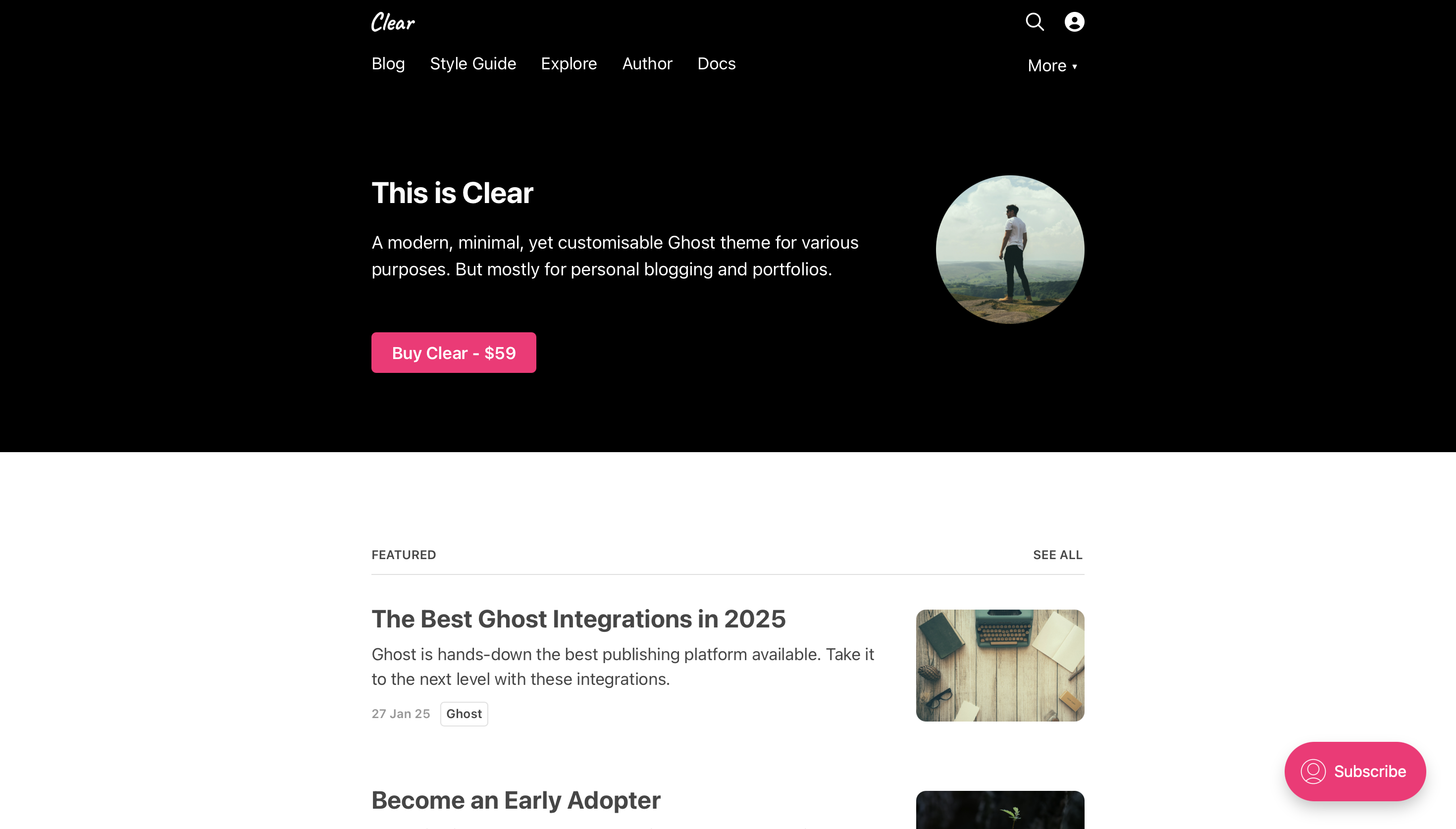 Premium Ghost themes for writers and publishers, focused on clean design, performance, and ease of use. We also offer custom Ghost development including custom themes, theme customizations, landing pages, and integrations. Visit outline7.com to see our themes or get in touch.